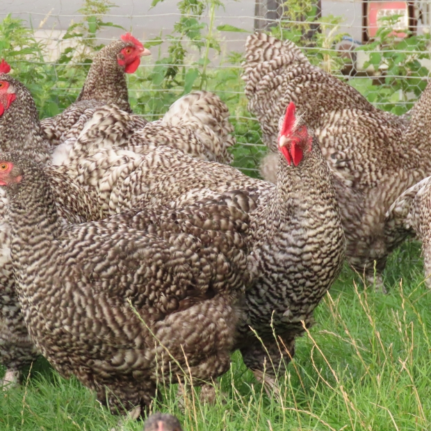 Jonge dieren Mechels hoen, hanen en hennen van ons Levend Erfgoedhof 't Poldrietje.